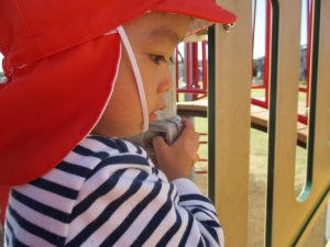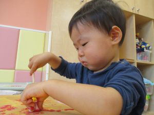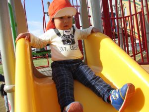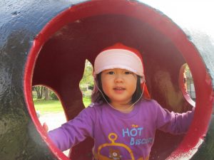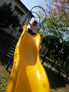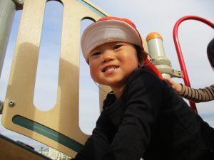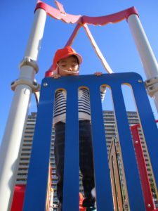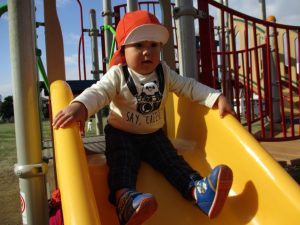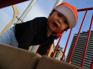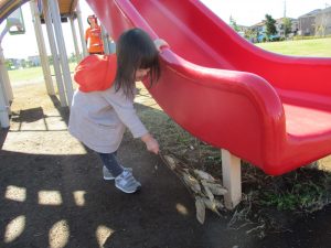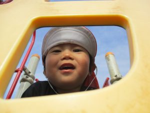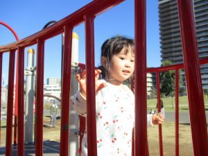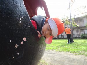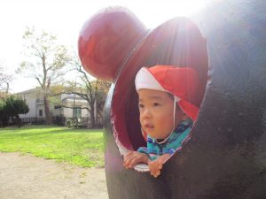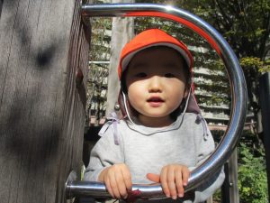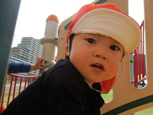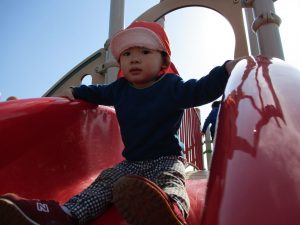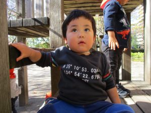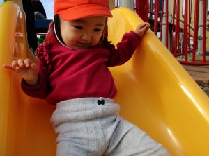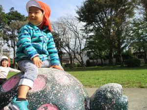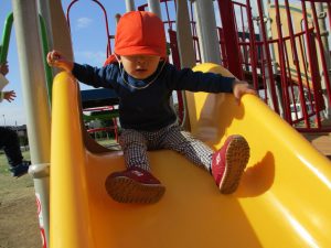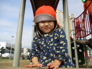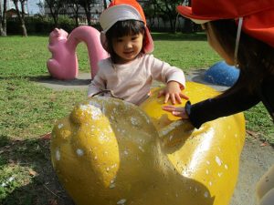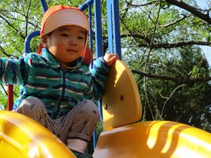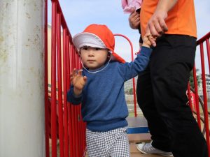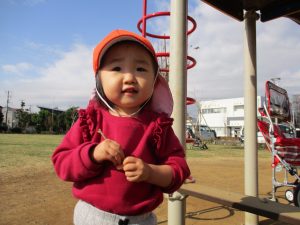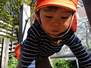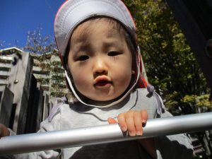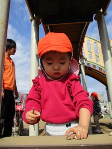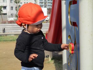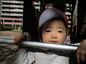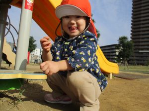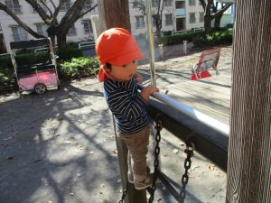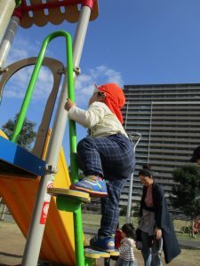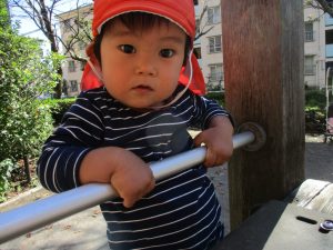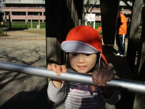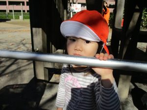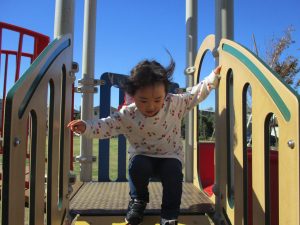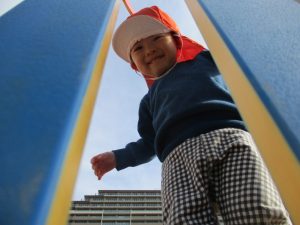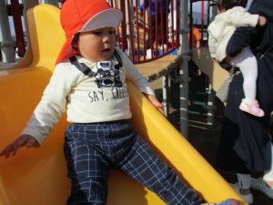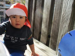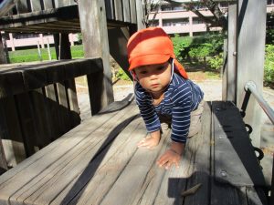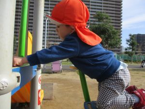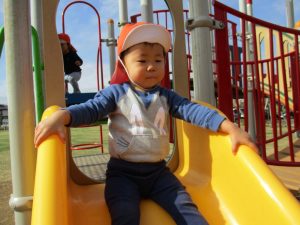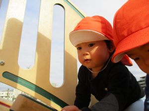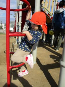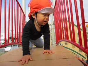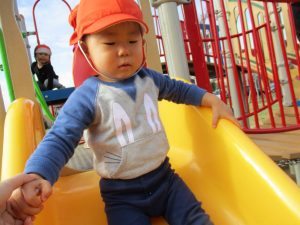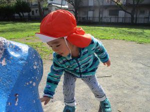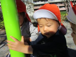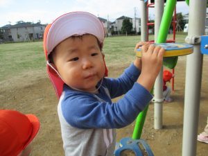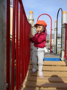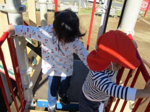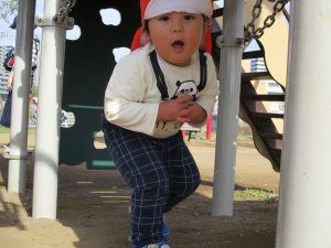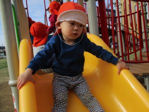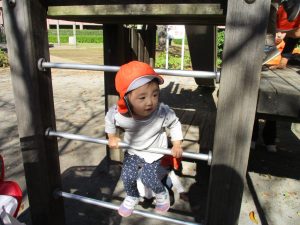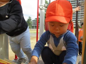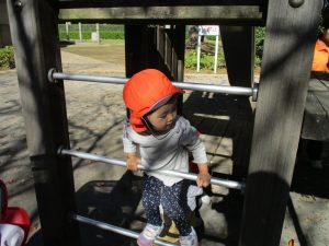 1歳児のお友達は固定遊具で楽しそうに遊んでいました。