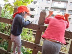 1,2歳児のお友達で谷津駅周辺まで京成線を見に行きました♪