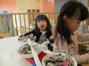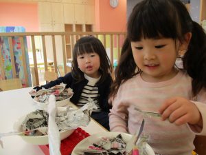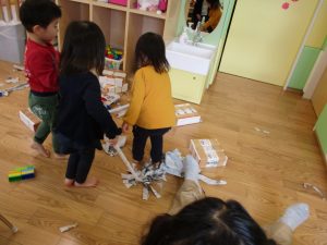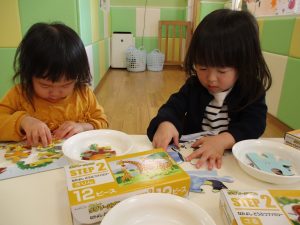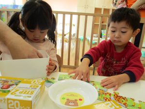 パズルで遊んだり新聞紙で遊んだり室内遊びの「王道」を遊び尽くしました。