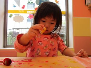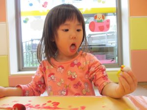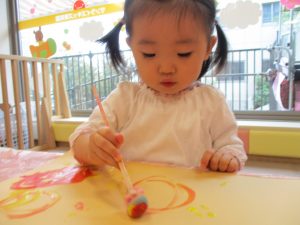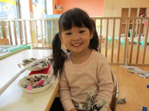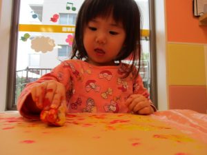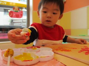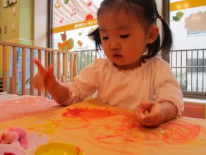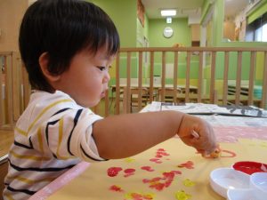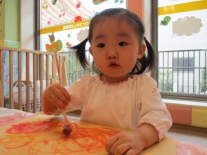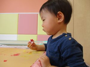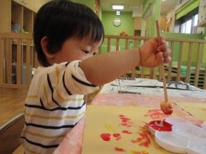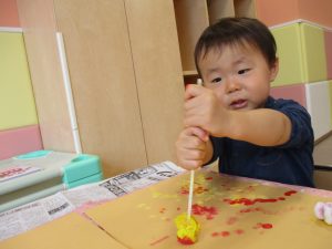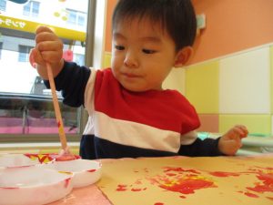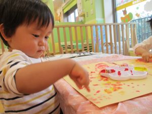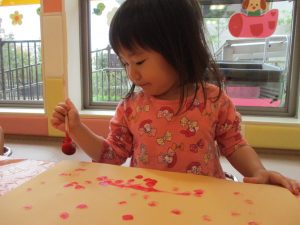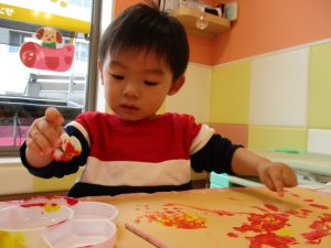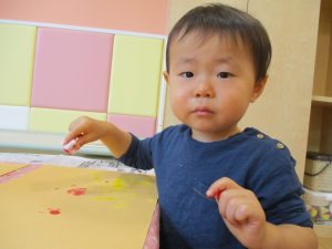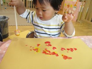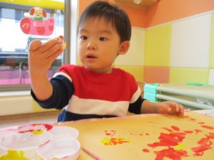 2歳児さんの製作もそうでしたが色合いから秋の深まりを感じる事が出来ますね!