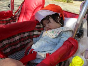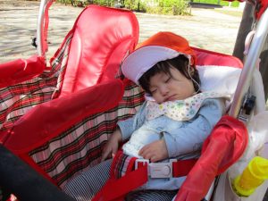 0歳児のお友達は程よい暖かさと散歩車に揺られ終始気持ち良さそうに寝ていました。
