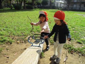 保育園から結構距離はあるけど体力がついてきた2歳児さんは終始ご機嫌な様子で歩き切っています。