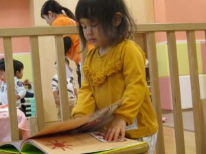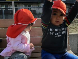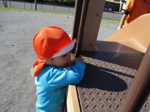 0歳児さんの様子が気になるのか時折、様子を観察していました。