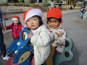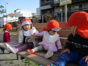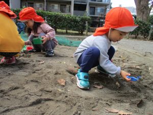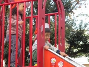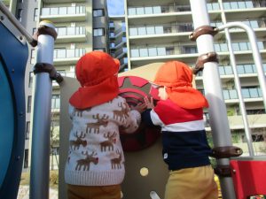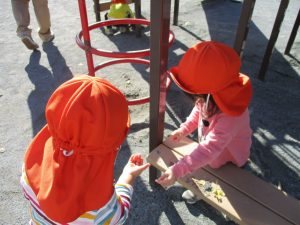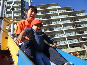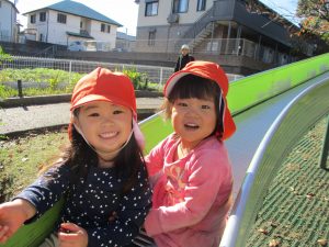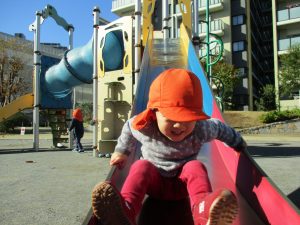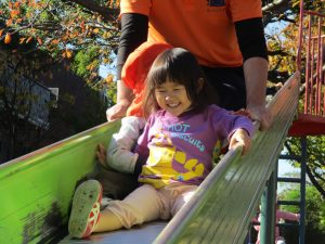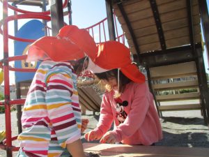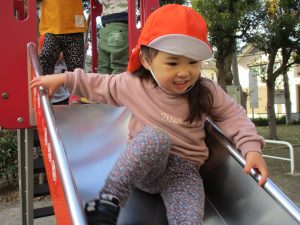 砂場でままごとを楽しんだり大きなすべり台で心行くまで体を動かして遊びました。