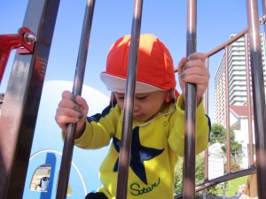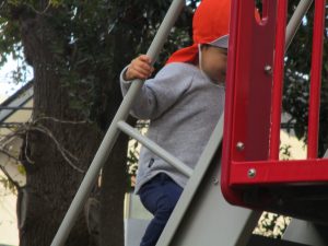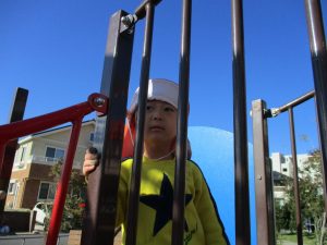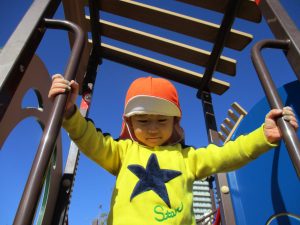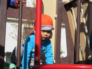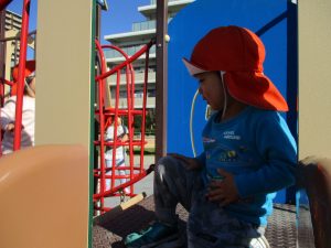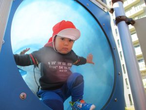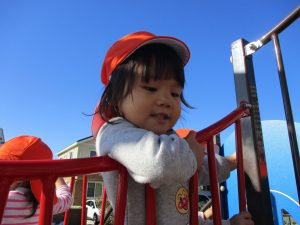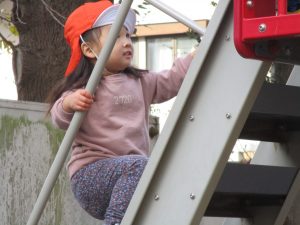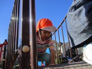 青空の下先生と一緒に遊具に楽しく挑戦致しました。