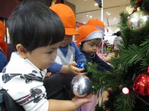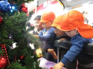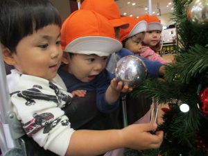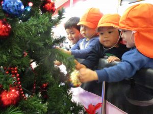 0.1歳児のお友達で園周辺のモールまでクリスマスツリーを見に行きました♪