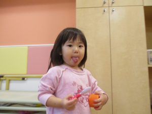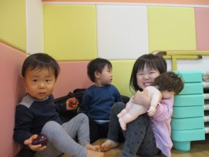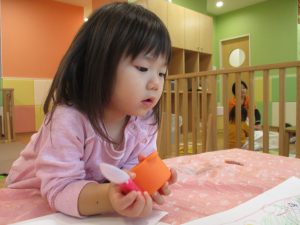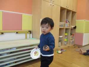 1歳児さんもシール貼りを楽しんだりままごと遊びを楽しみました!