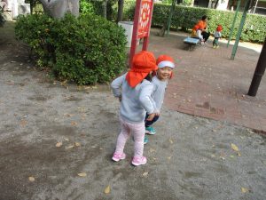 最近はしっぽ取りやおいかけっこなど簡単なルールのある遊びも楽しんでいます!