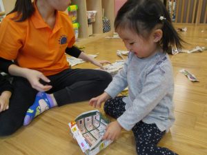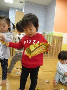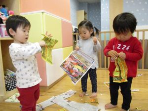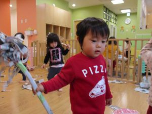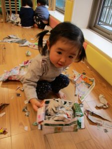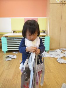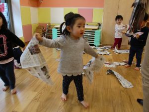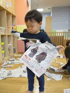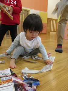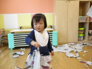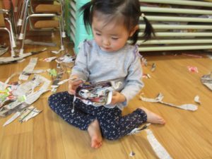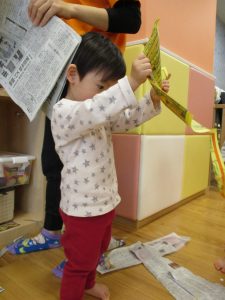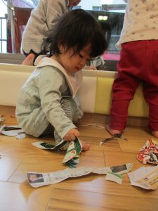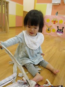 0.1歳児のお友達は新聞紙遊び♪