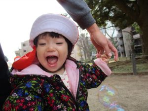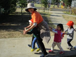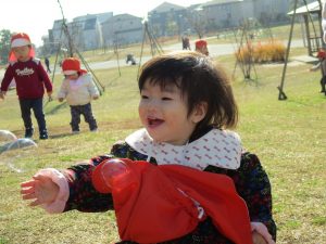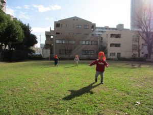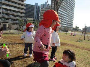 広場でかけっこを楽しんだりシャボン玉を追いかけてたくさん体を動かして遊びました。