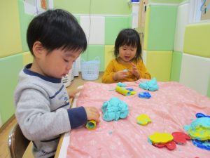 2歳児さんはパズルや絵描きや粘土で遊びました!