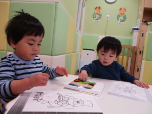 保育園に戻り絵描きや折り紙を楽しみました♪