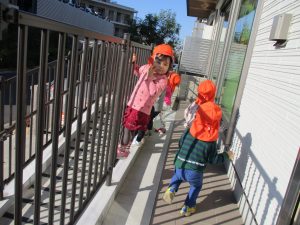 大きなすべり台を使って体を動かして楽しく遊びました。
