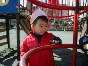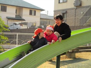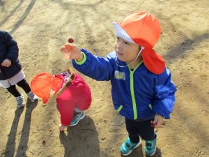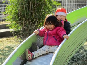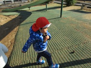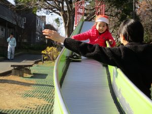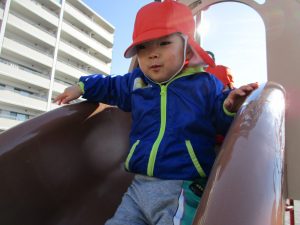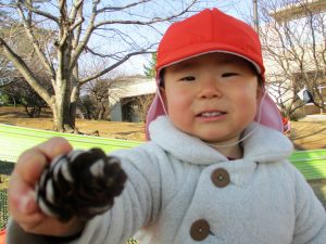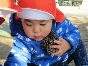 大好きなローラー滑り台でたくさん体を動かしたり、どんぐりや松ぼっくりなどの自然物探しに夢中でした!
