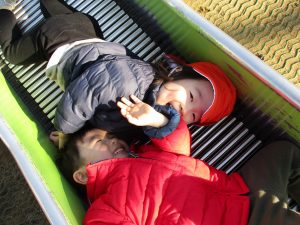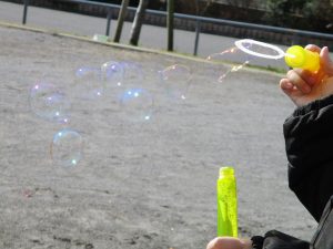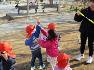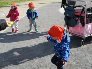 固定遊具やシャボン玉を楽しそうに追いかけてたくさん体を動かしました。