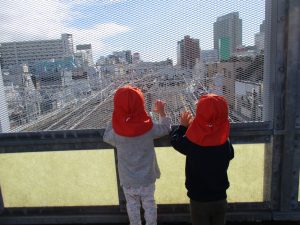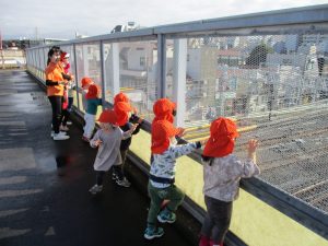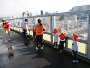 雨上がり皆で津田沼駅まで電車を見に行きました♪