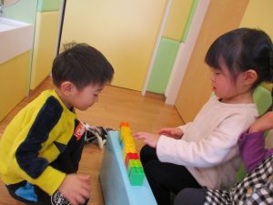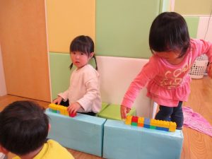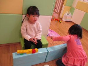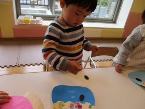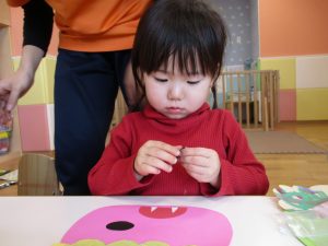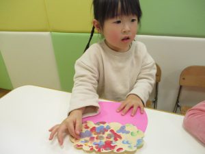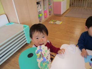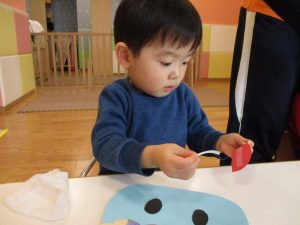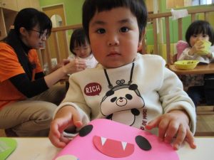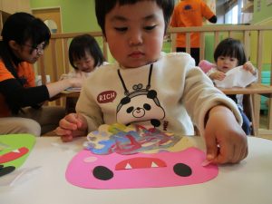 節分の製作を行ったり、マットとコットを組み合わせてサーキットを組み、思い切り体を動かして遊びました!