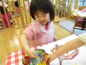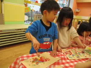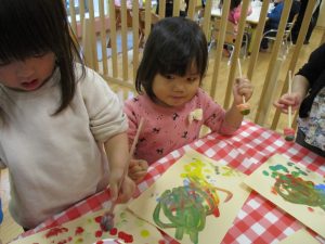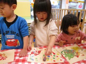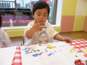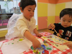思い思いの色を混ぜたりスタンプを心行くまで楽しみました。