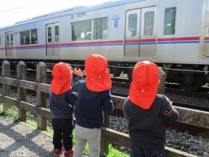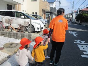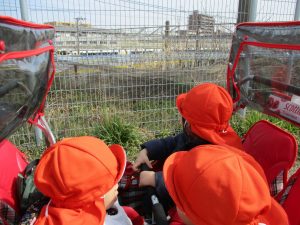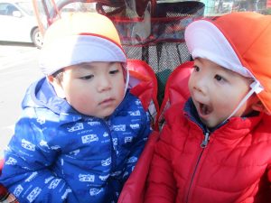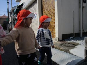 2歳児さんは園周辺、0,1歳児さんは谷津駅周辺までお散歩に行きました!