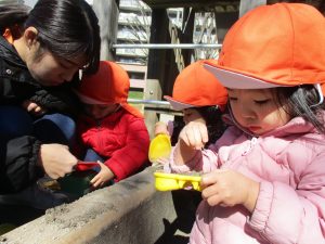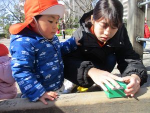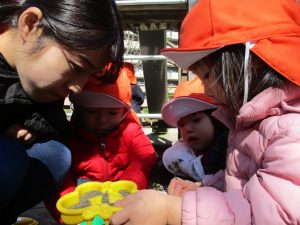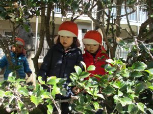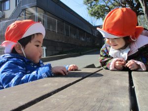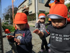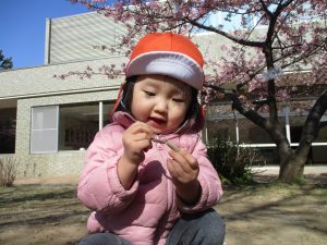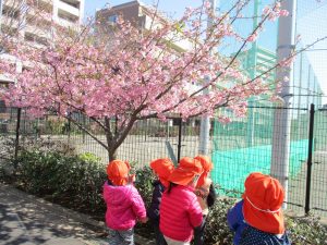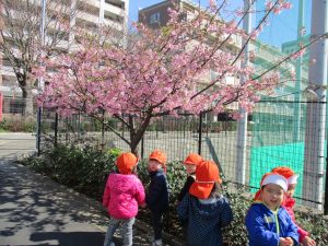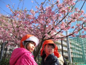 園周辺を散歩していると河津桜も咲き始め子ども達も指をさしながら「あの花なんて名前?」と興味津々です!