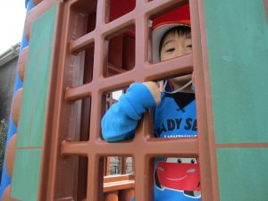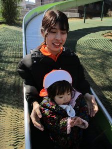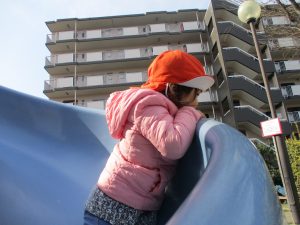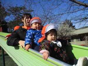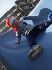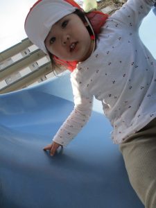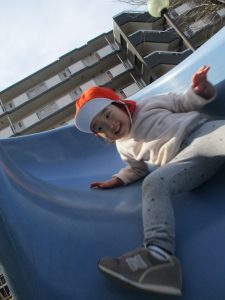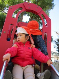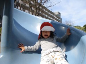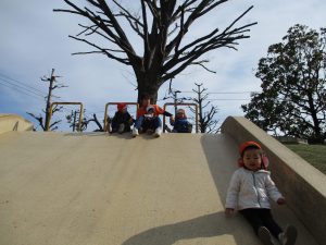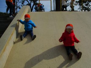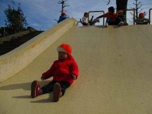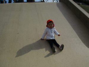 コミュニティーセンターの滑り台はとても長いのですが、緩やかな坂道になっておりとても安全に遊べますね!