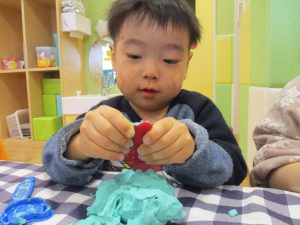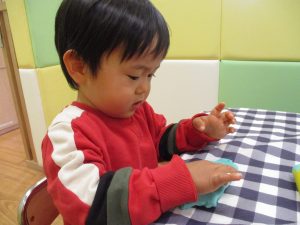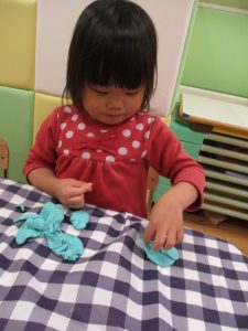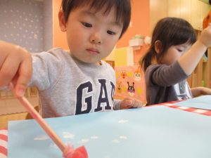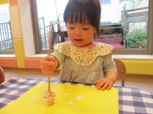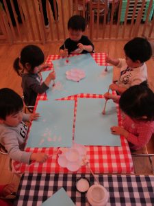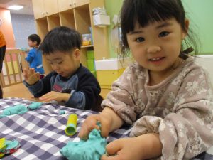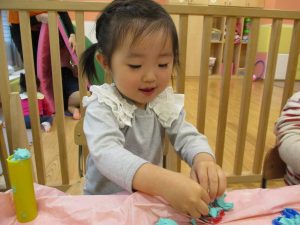 絵の具や粘土の机上遊びを中心に楽しい時間を過ごしました。