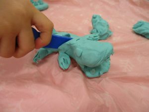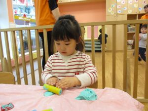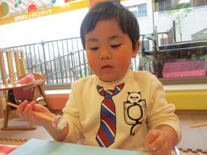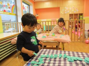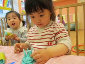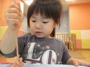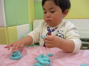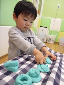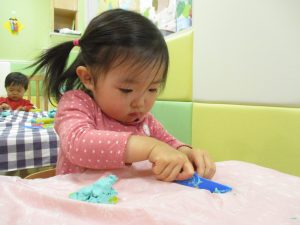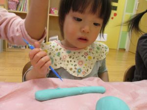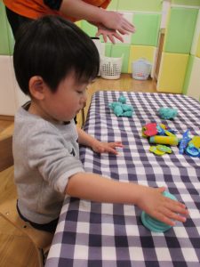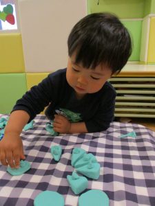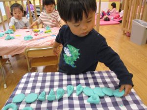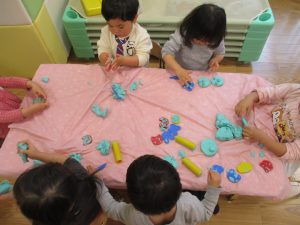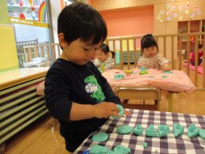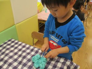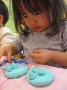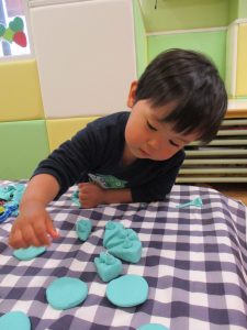 粘土遊びが中心となりましたが先生の見本に目を輝かせており「●●も作ってよー」とたくさんリクエストをしていました。