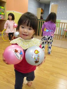 フラフープやカラーボールで思い切り体を動かして遊ぶ時間も作り楽しく過ごせました!