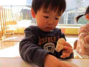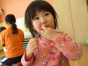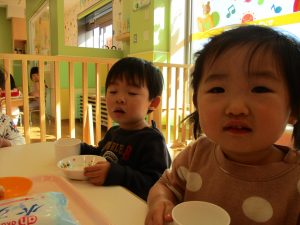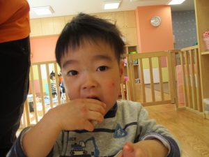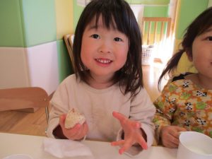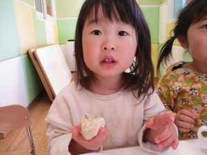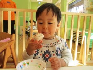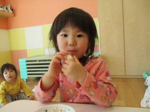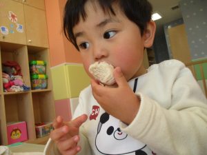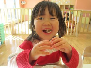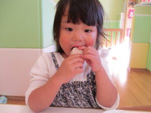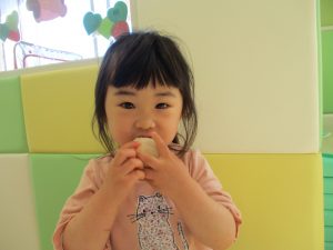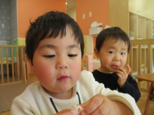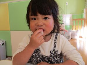 おやつもとても美味しく、皆の大きな口が可愛いですね。