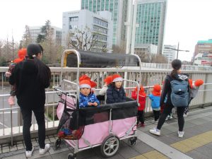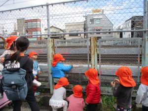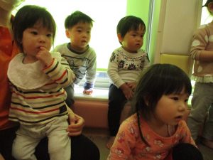 皆でエレベーターに乗ったり電車やバスを見て過ごしました。