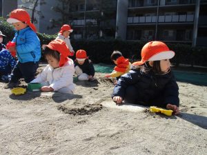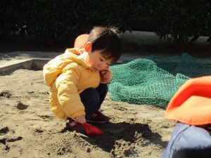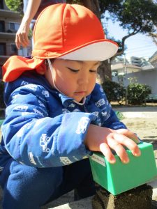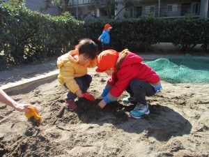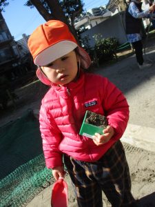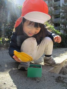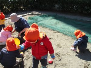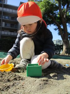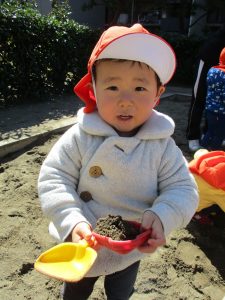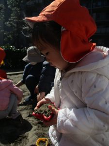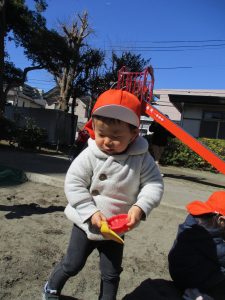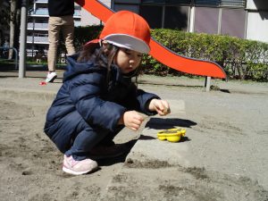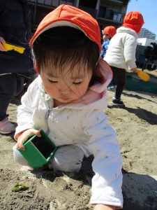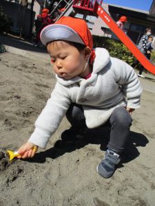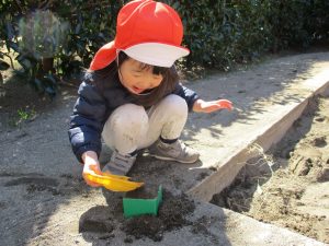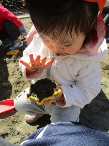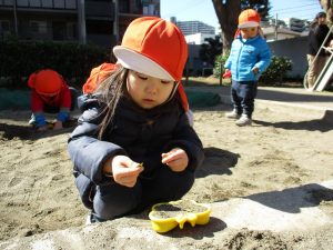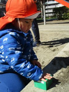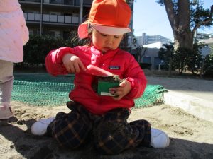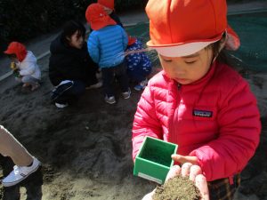 型入れやスコップを上手に使い、ごっこ遊びに夢中でした。