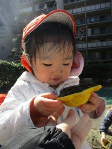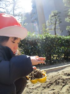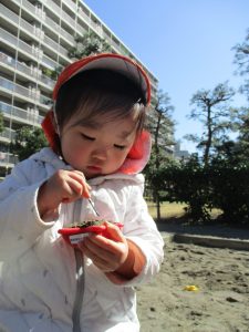 砂場道具を持参した事で楽しいままごとタイムとなりました♪