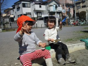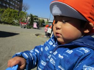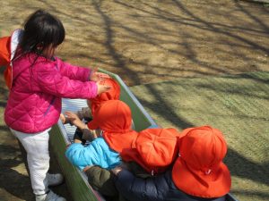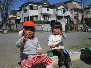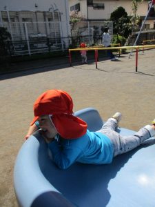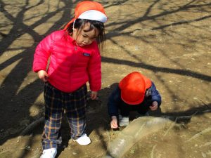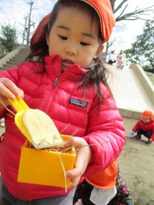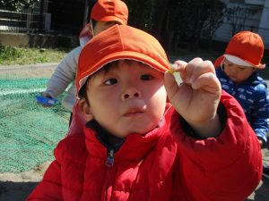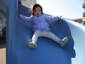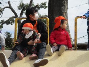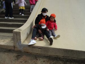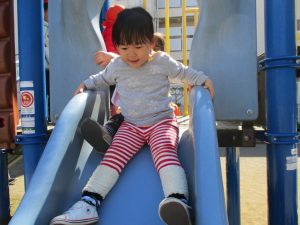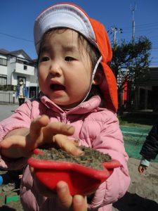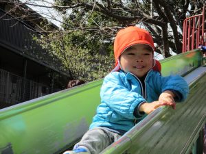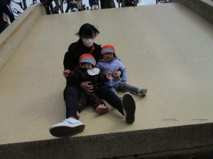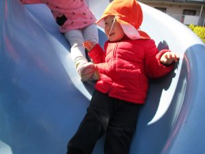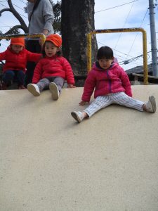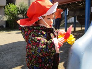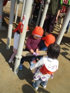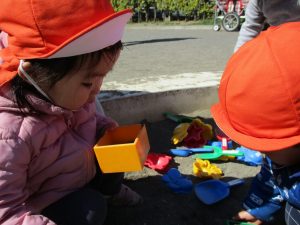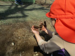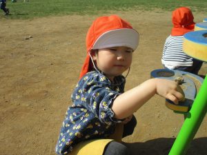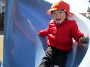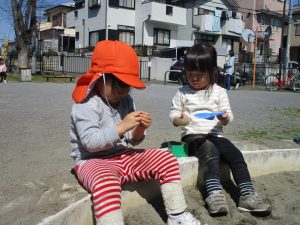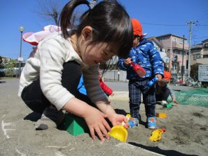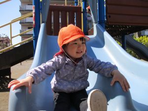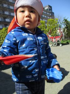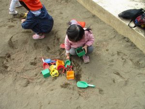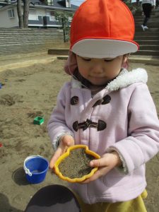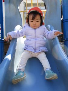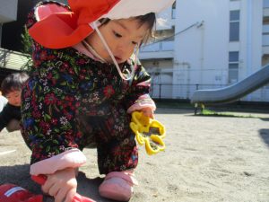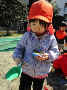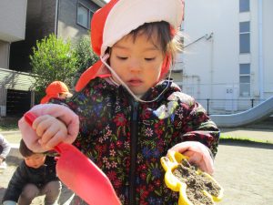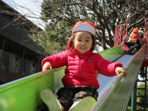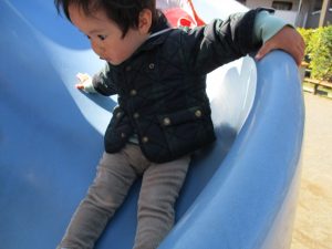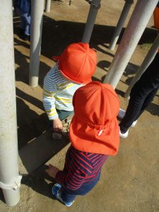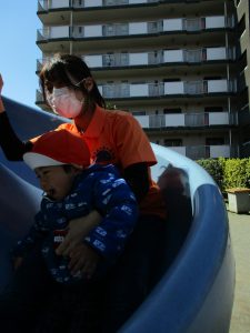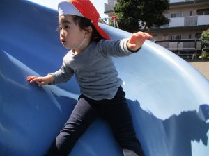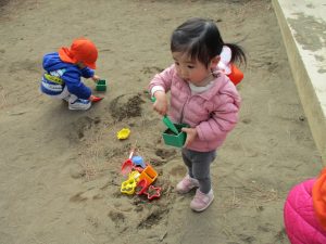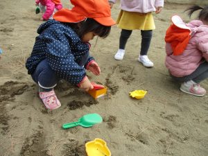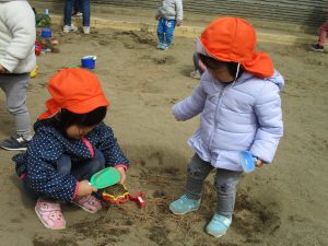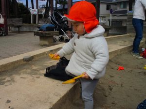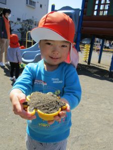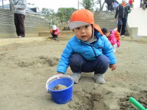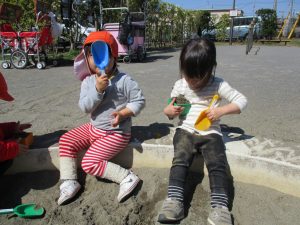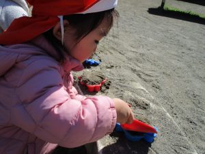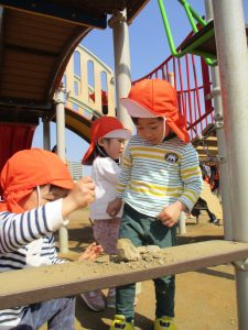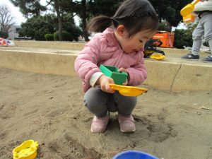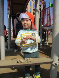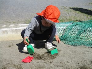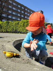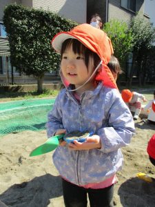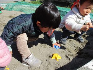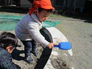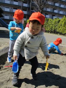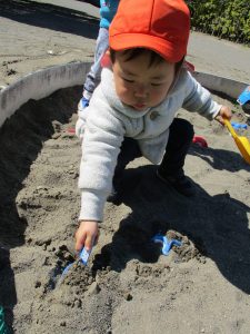 この日も滑り台でたくさん体を動かしたり、砂場ではスコップを使って穴掘りを楽しみました。