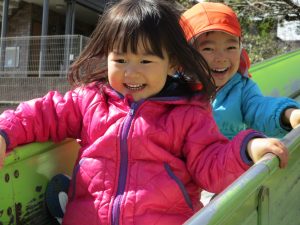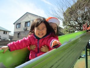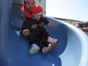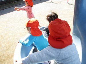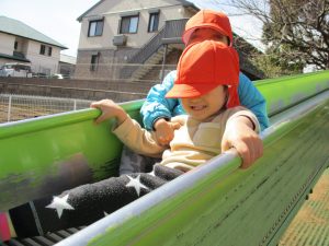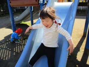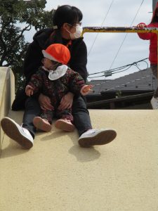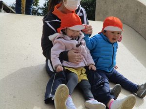 横に長い滑り台は先生達も一緒に遊べ、子ども達は大満足です♪