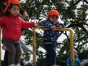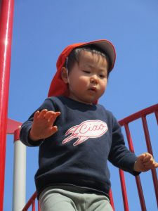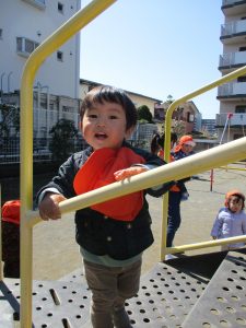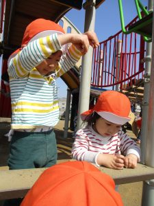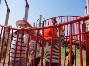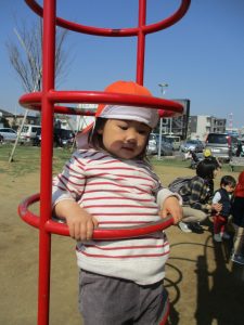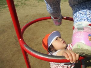 2歳児さんはなんだか固定遊具が小さく感じます。