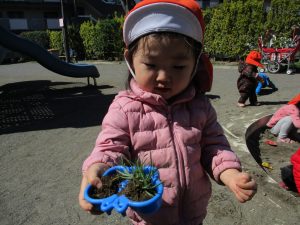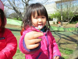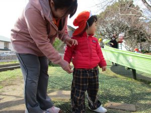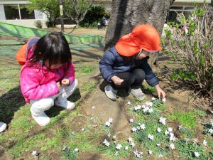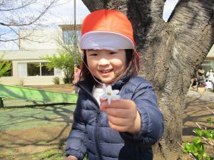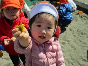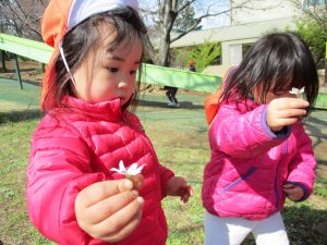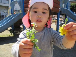 2歳児のお友達は谷津コミュニティーセンターにてローラー滑り台を楽しんだり、花を摘んで春の自然物に触れあう事を楽しみました♪