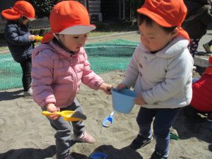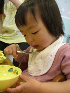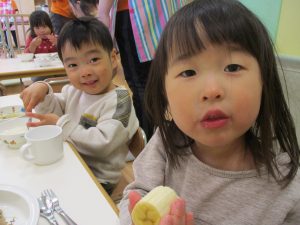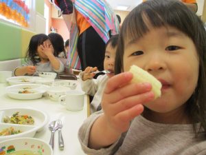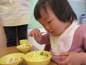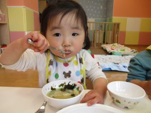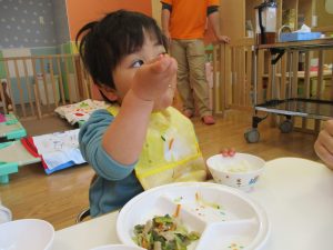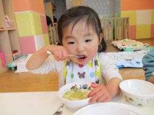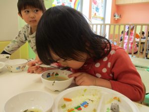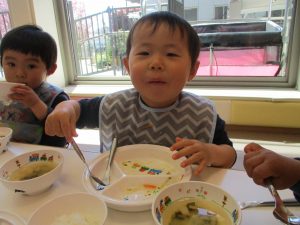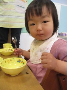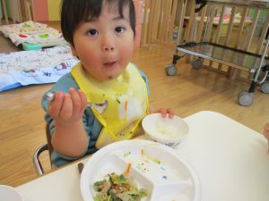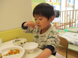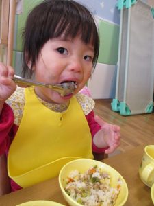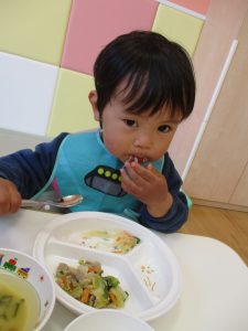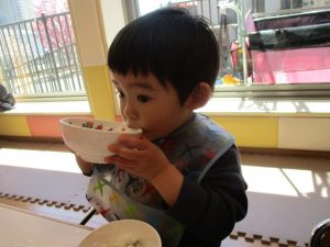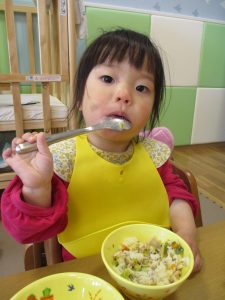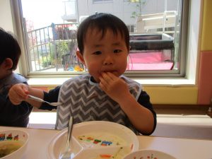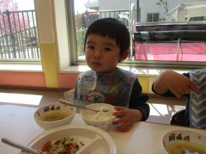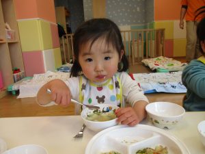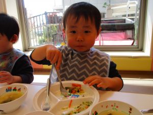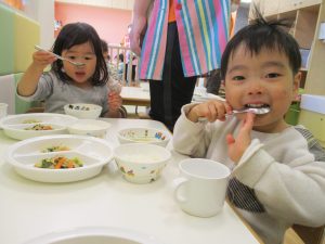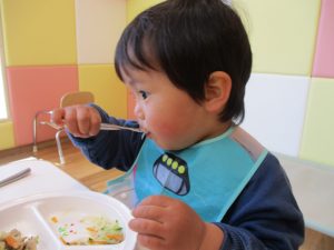 2歳児の皆は谷津園の愛情たっぷり給食を食べられるのも残りわずか!