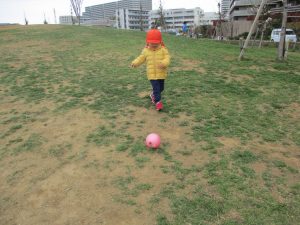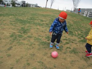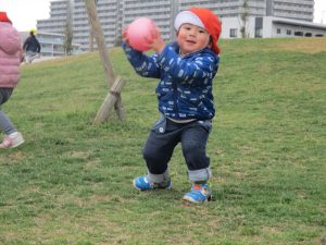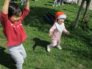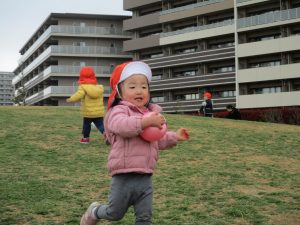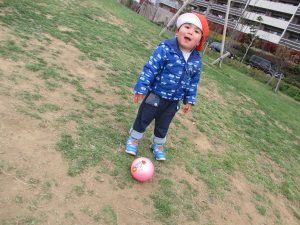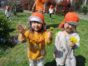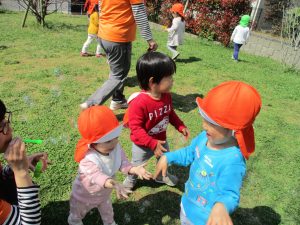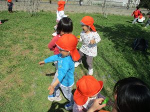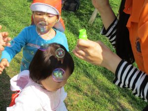 この日は公園で遊具を使ったり、シャボン玉を追いかけてたくさん体を動かして遊びました!