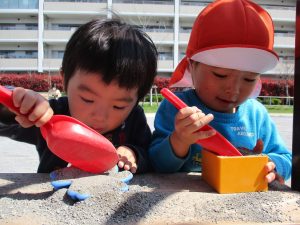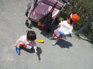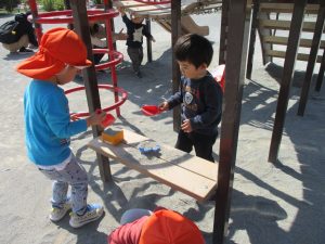 最近は公園の遊具の周りで砂場セットを使ってのままごと遊びが人気の様で、思い思いのご飯を楽しそうに作っております。