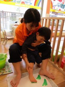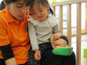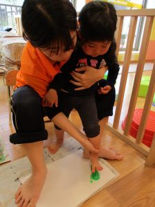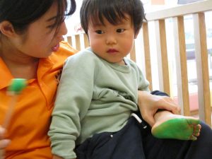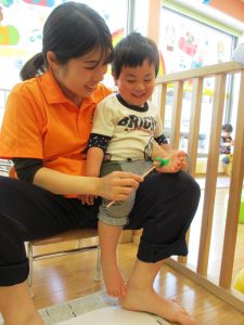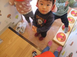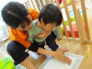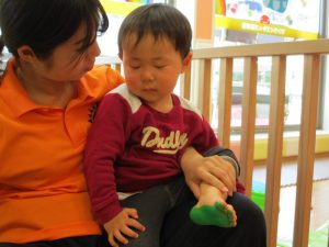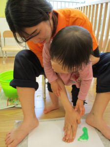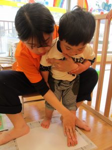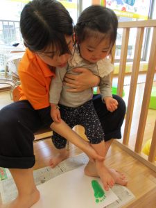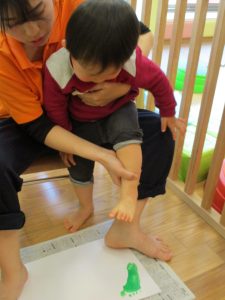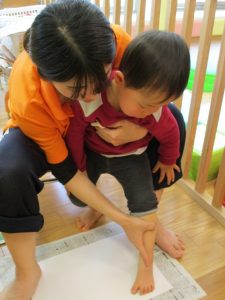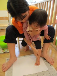 日中は皆でサーキット遊びを行ったり足形スタンプを取りました。