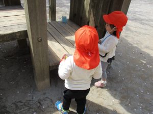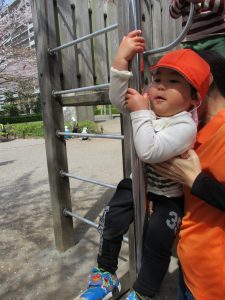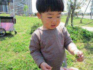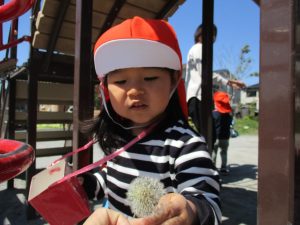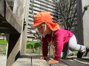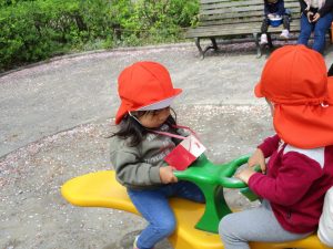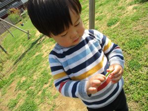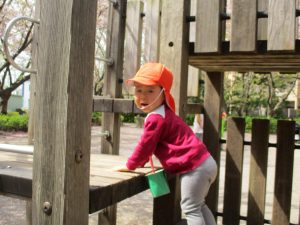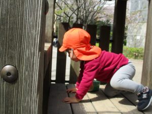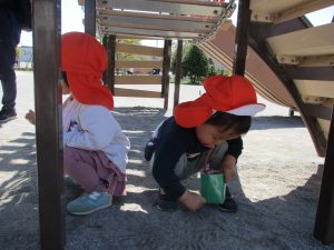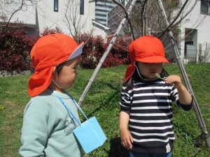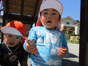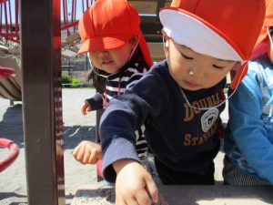 固定遊具で思い切り体を動かしたり春の自然物に親しみも持っています!