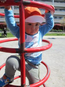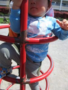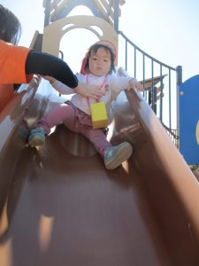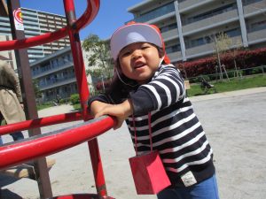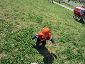 とにかく天気がよく2歳児さんは公園で思い切り体を動かして遊びました。