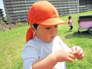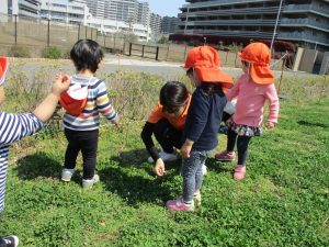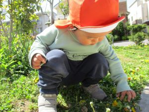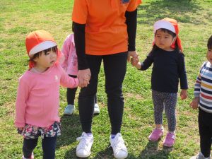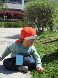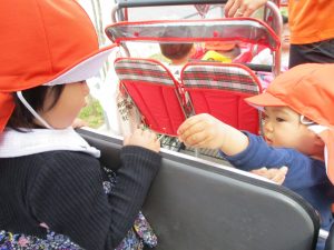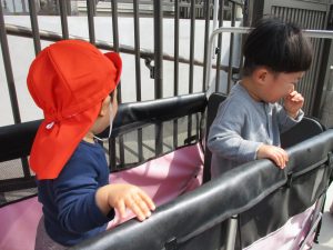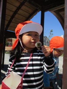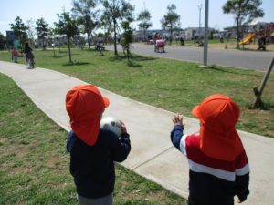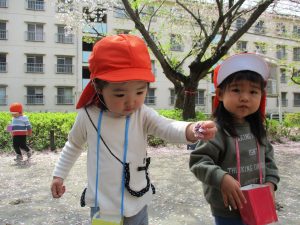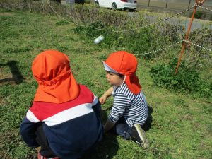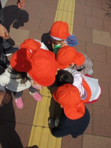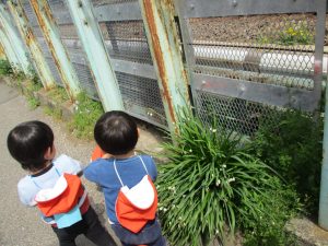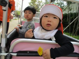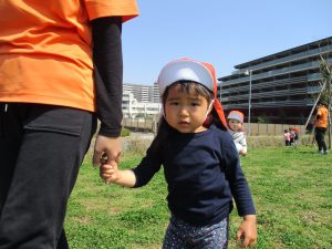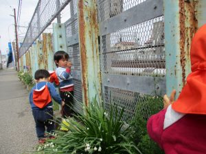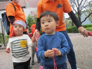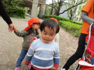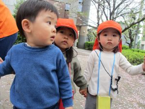新入園のお友達も初めての戸外散歩に目を輝かせていました。