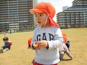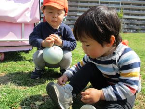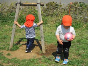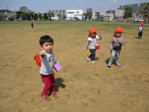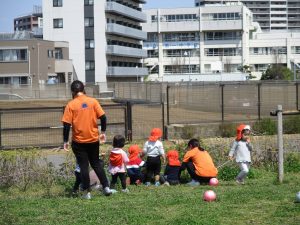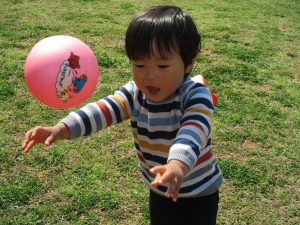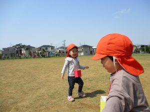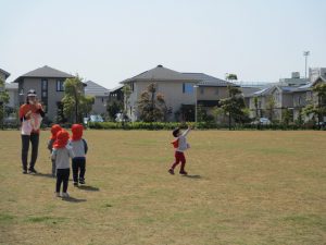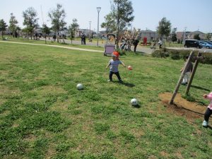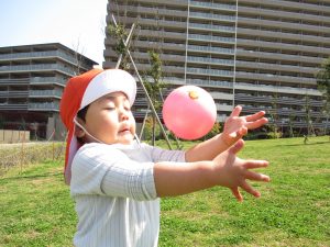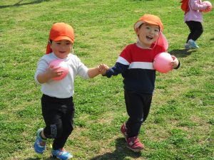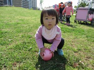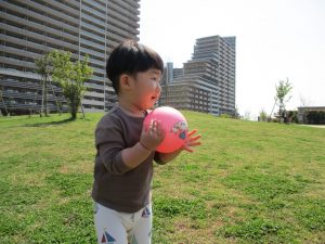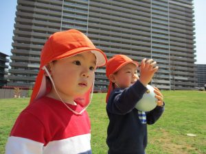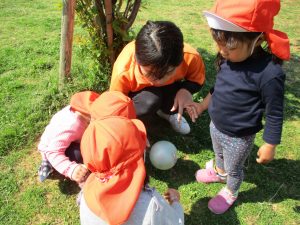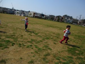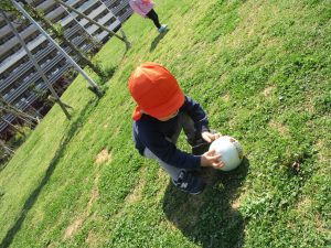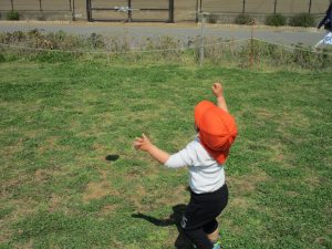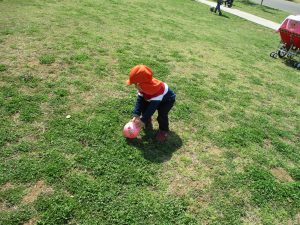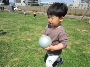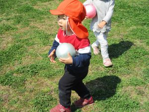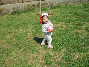 ボール遊びが前年度から引き続きブームのようで投げたり蹴ったり追いかけたりと、バリエーション豊富に楽しく遊んでいます。