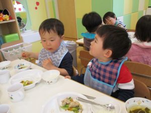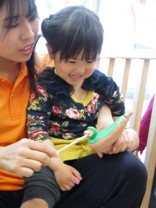 新入園のお子様はまだ少し泣いてしまう場面もありますが「笑顔」が増えてきたように感じます。