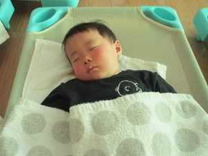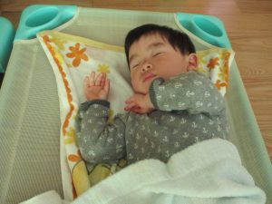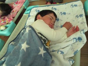 0歳児のお友達は暖かさに包まれ気持ち良くスヤスヤと眠っております♪