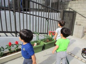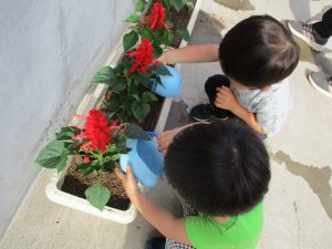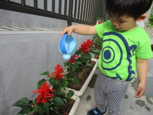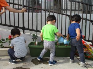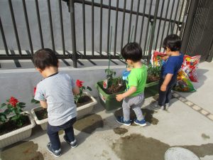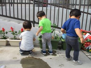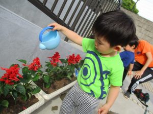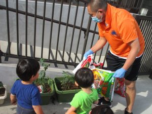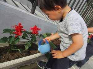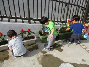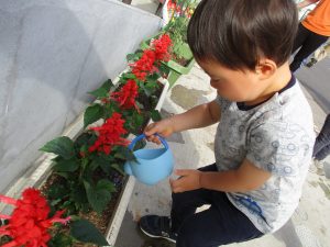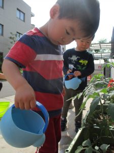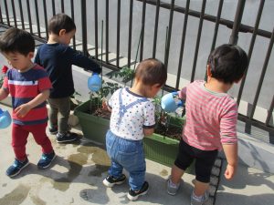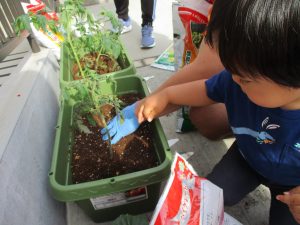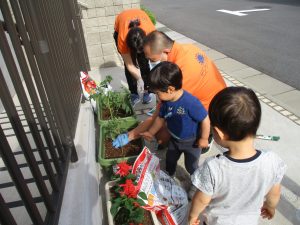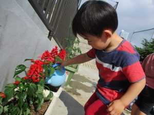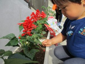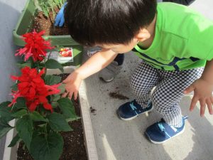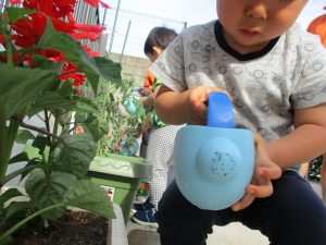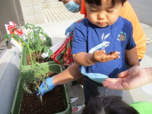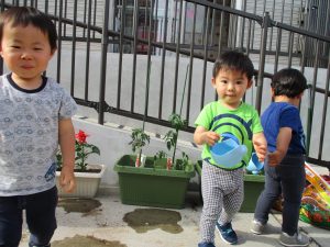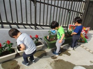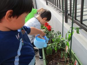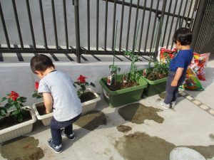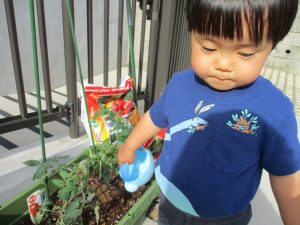 食育の一環として年間をかけて様々な野菜や花の栽培に挑戦でございます♪