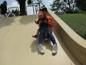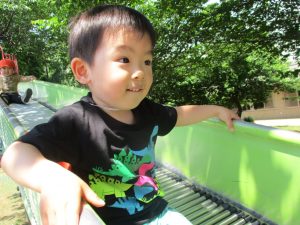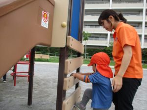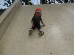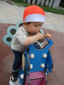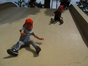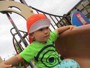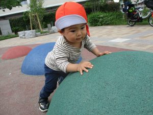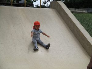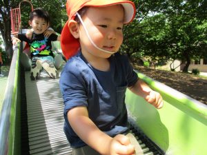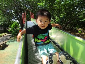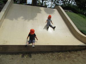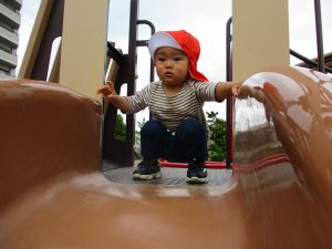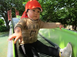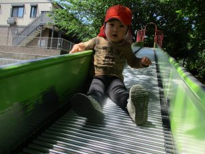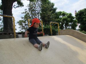横に長い滑り台の滑り方も日に日に上手になってきたね。