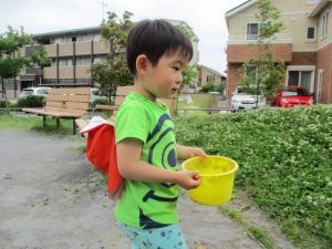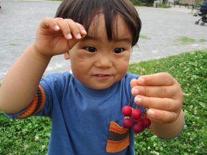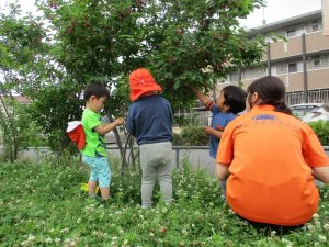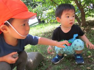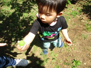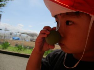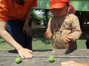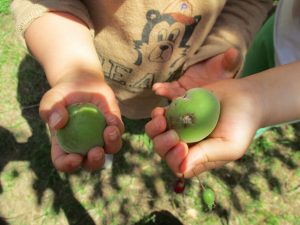 少し季節外れですが梅の実集めも楽しみ「なんか匂いする」と喜んでいました!