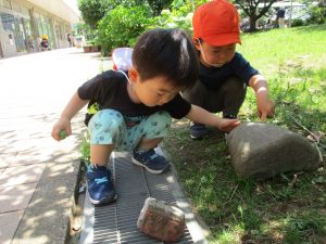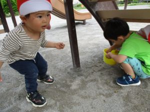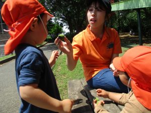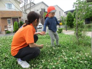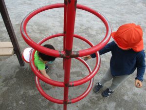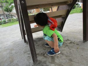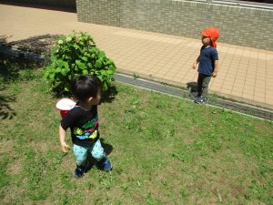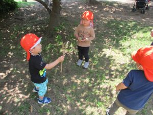 固定遊具で思い切り体を動かしたり草や花などの自然物集めに夢中でした。